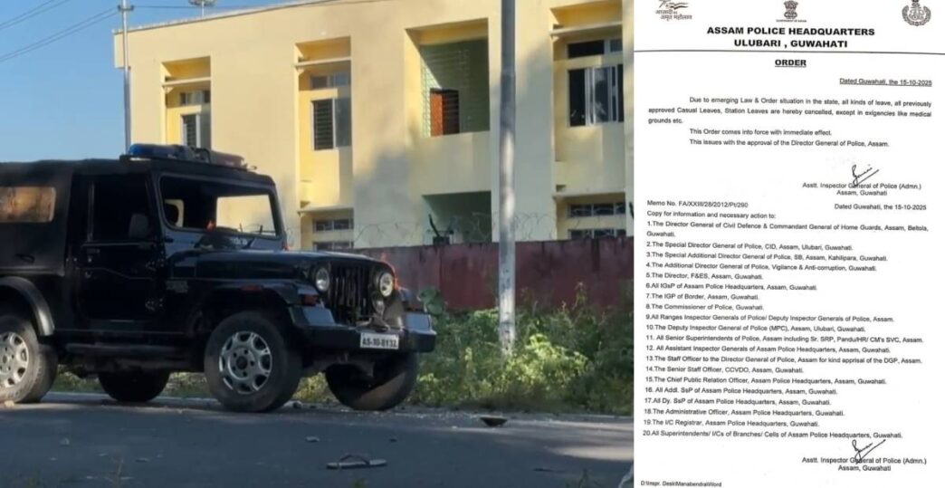 The Assam Police Headquarters has issued an urgent order cancelling all kinds of leaves, including previously approved casual and station leaves, for police personnel across the state. The directive, issued from Ulubari, Guwahati, comes into effect immediately and allows exceptions only for urgent medical needs. The decision has been taken in response to the emerging law and order situation, aiming to ensure adequate police presence and maintain peace in the state.